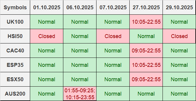 لطفاً توجه داشته باشید که هنگ کنگ در تاریخهای ۱، ۷ و ۲۹ اکتبر به ترتیب روز ملی، روز بعد از جشنواره نیمه پاییز و جشنواره چونگ یونگ را جشن میگیرد.