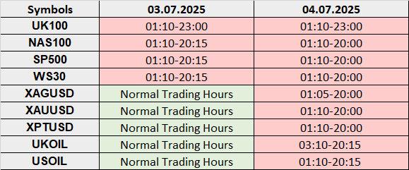 In this regard, the trading schedule for some trading instruments will be changed. In addition, during holidays, there may be a decrease in market liquidity and associated to it increased volatility.
