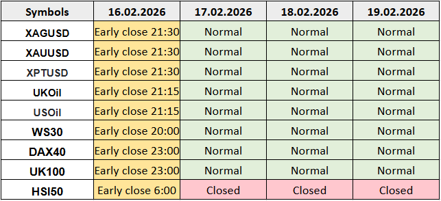 Alterações no horário de negociação em fevereiro